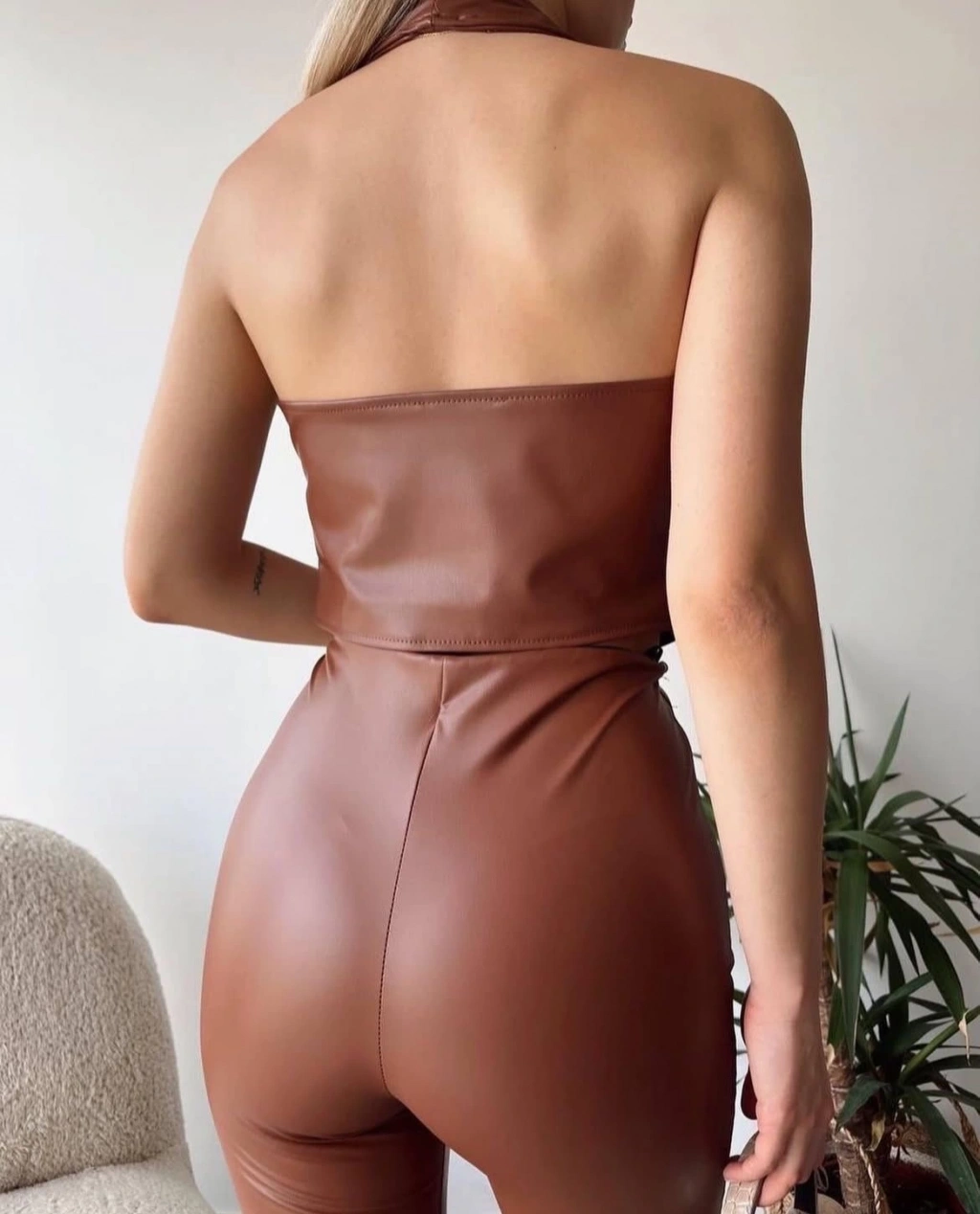 Şık ve modern tasarımıyla dikkat çeken Kahve rengi İki Düğmeli Deri Yelek, gardırobunuzun vazgeçilmezi olmaya aday!