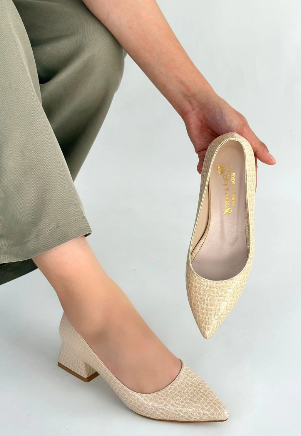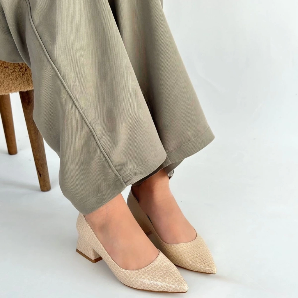 • Meort Bej Rugan Topuklu Ayakkabı