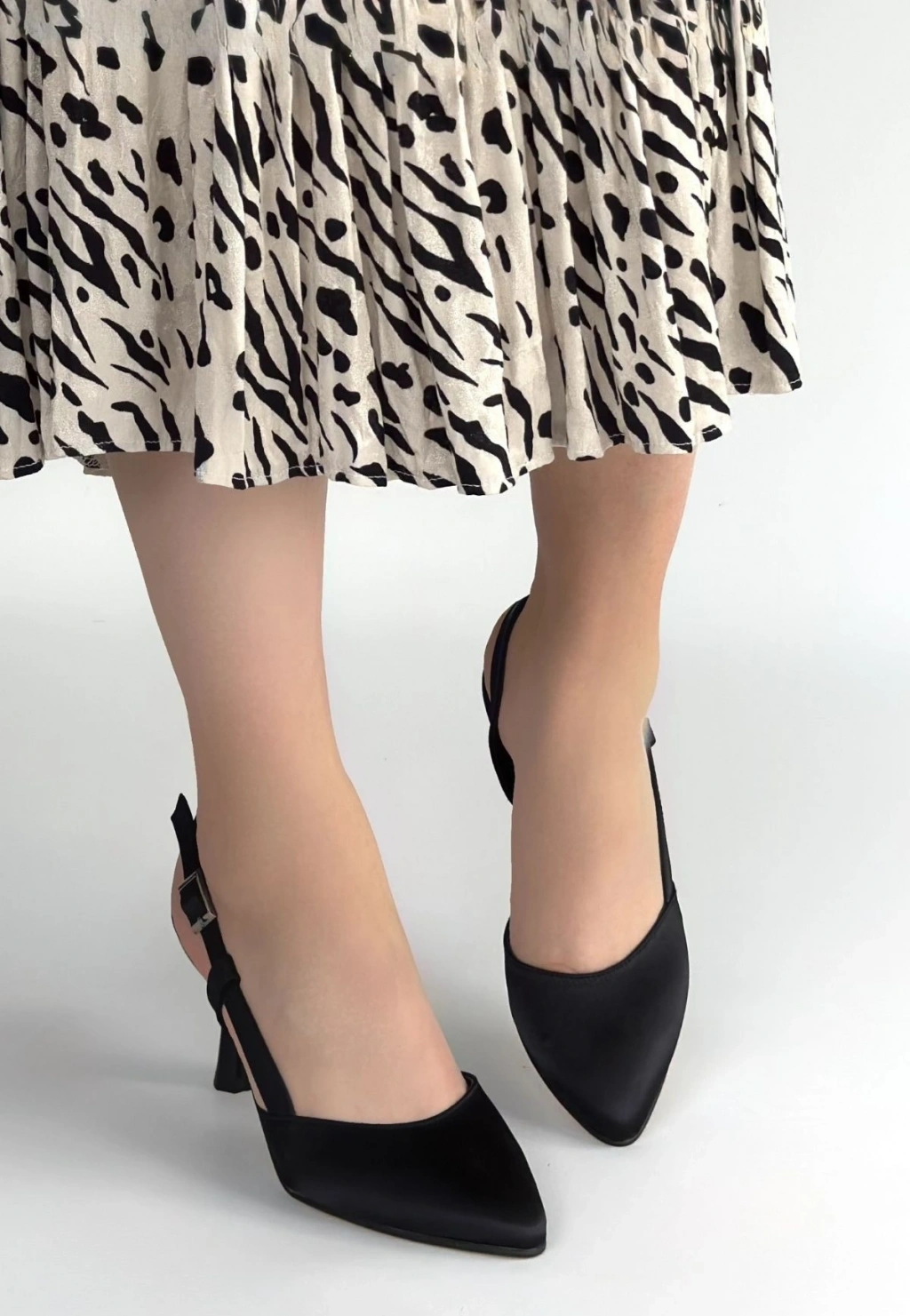 • Minde Siyah Saten Topuklu Ayakkabı