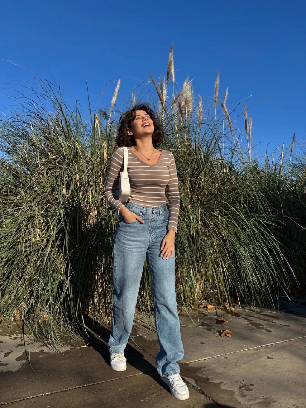 - Bej renk ve çizgili desen kombinasyonu, şıklık ve zarafeti bir arada sunar.